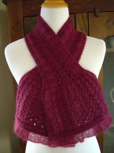 Peony Scarf – here is the link.  I just checked and within a couple of minutes of uploading the pattern, it’s already been tagged as a “favorite” by several knitters.  Very exciting.