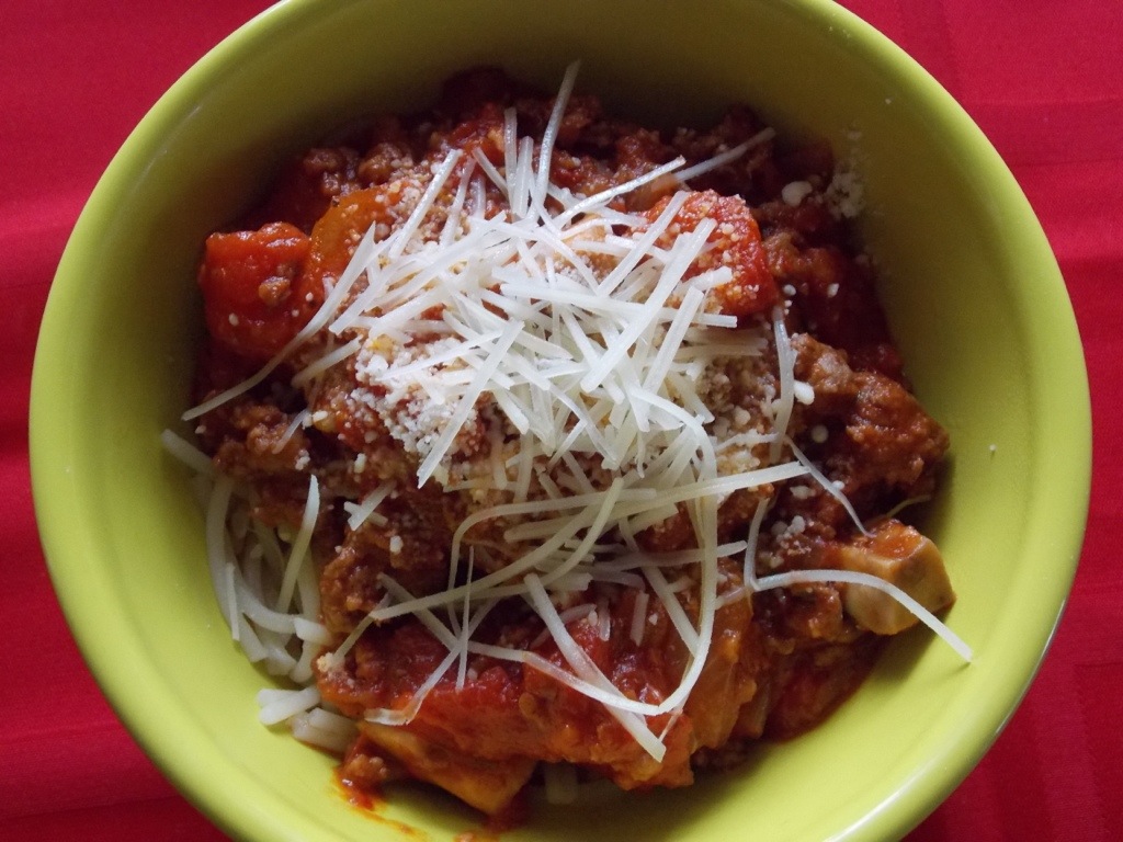 A jar of spaghetti sauce (yes, I cheated and this isn’t all from scratch)