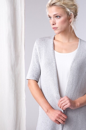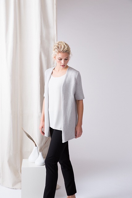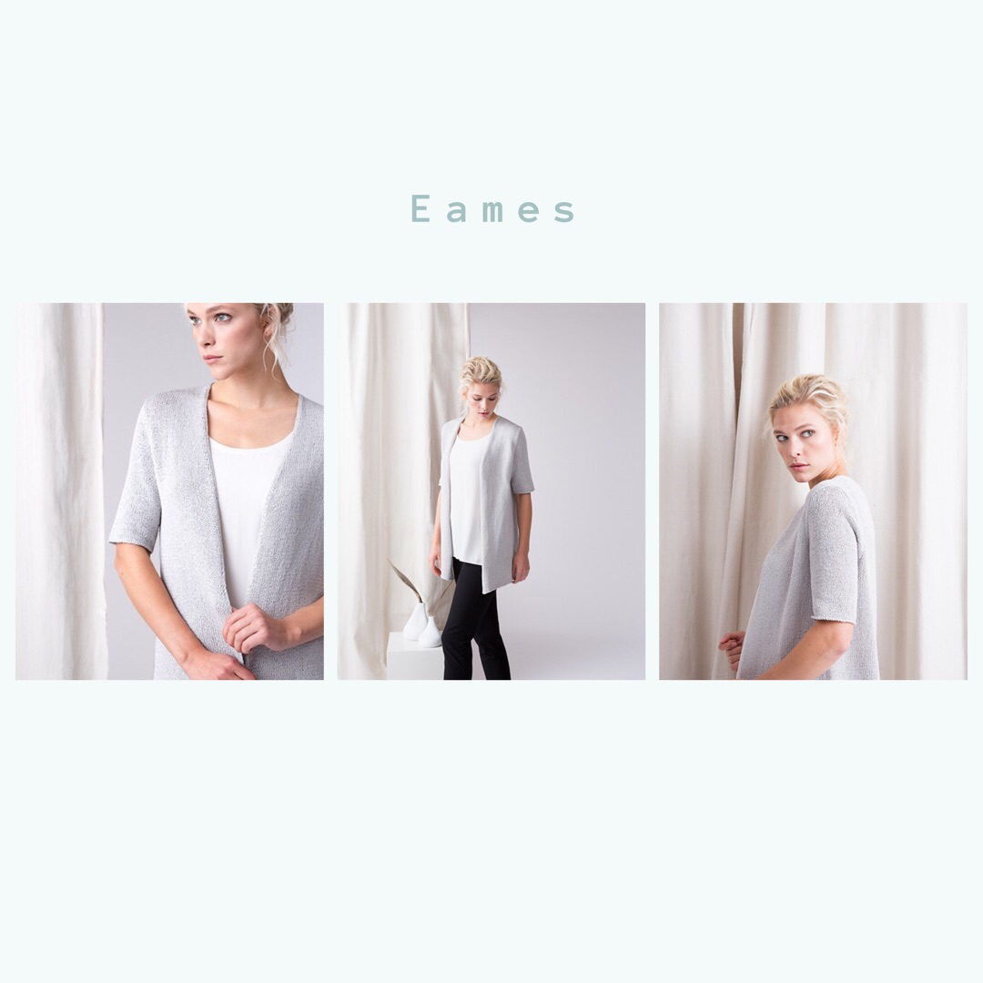 This week I’m going to talk about Eames, one of the two cardigans we are offering in our SS17 Collection. Eames is created using our mercerized cotton yarn, Rain, held single. Rain is a joy to knit with. The mercerized cotton has a beautiful sheen and the chain construction helps Rain maintain its shape and adds to its fluid drape.
