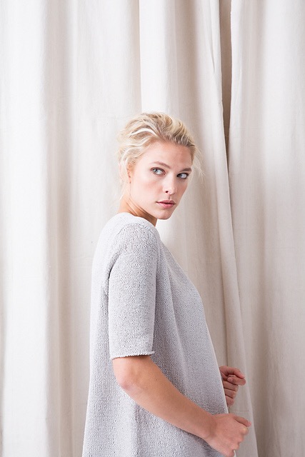 Eames is worked flat in pieces from the bottom up then seamed. I’ve written the pattern for two sleeve length options. You can make the short sleeve option as shown in the photos above, or you can make the long sleeve option. Eames is worked on a size US 7 needle. The resulting fabric is suitable for three-season wear; Spring through Fall.
