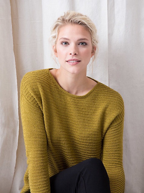 Let’s talk about Milan. Milan is a super comfy, easy to wear pullover created in our new yarn Lunar. Milan has a vented hi-low hem and a very simple to follow garter ridge pattern. Milan’s body and sleeves are worked flat from the bottom up with one strand of Lunar worked on a US size 4 needle. The neckline is finished with a shallow stockinette stitch collar that is turned under and seamed.