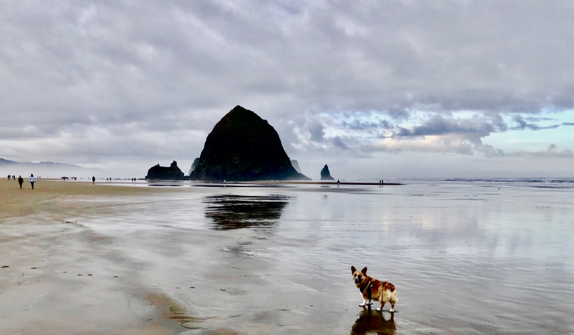 When Heather of Sew Happy Jane asked me to design a piece for her upcoming Beachcomber Collection, along with Tamy Gore, I was thrilled! Heather and I share a love of the ocean and beaches, and the Oregon coast in particular. As Cannon Beach is one of my favorite places on the Oregon coast, that’s what I chose to name my tee. It’s such a fun coastal town, with great shops and restaurants and a gorgeous beach boasting the beauty of Haystack Rock pictured below. I have very fond memories there, spent with family and friends and my dogs. My mom, sister and I try to go for a weekend each September, and will be doing so next month.