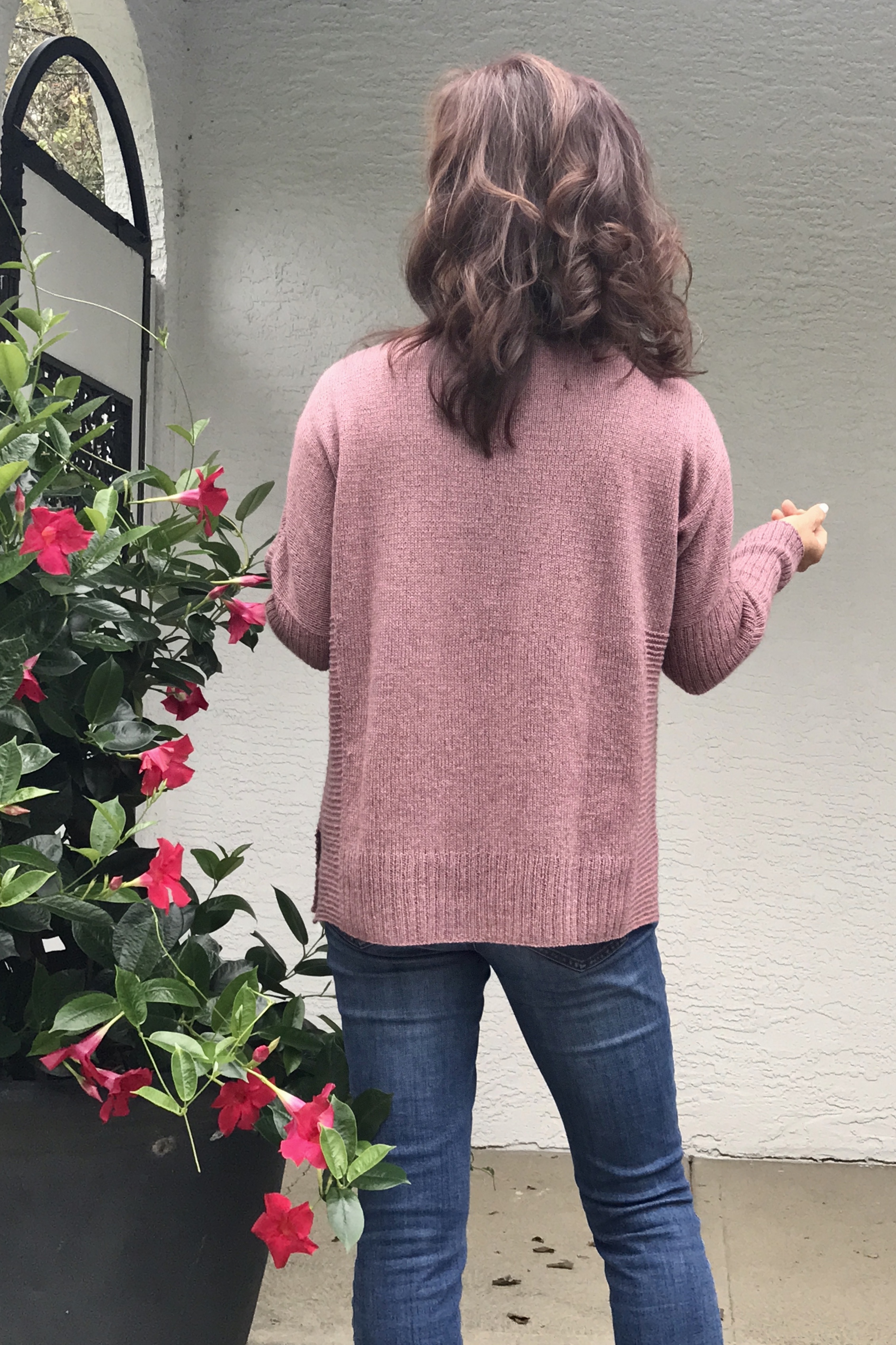 The WALLOWA pullover is created in June Cashmere Fingering. This yarn creates a beautiful fine-gauge fabric. WALLOWA starts with a vented hem worked flat in 2×1 rib between the wide Garter Ridge panels at the sides. The body is knit in the round from the bottom up in Stockinette Stitch, with the Garter Ridge panels at the sides and modified batwing shaping for the sleeves, with dropped shoulders. Work is divided at the underarm and worked flat to the shoulders. Ribbed Sleeves are picked up and worked in the round down to the cuffs. Collar is worked in 1×1 rib. WALLOWA is meant to be a loose-fitting pullover with approximately 3-6” of positive ease.